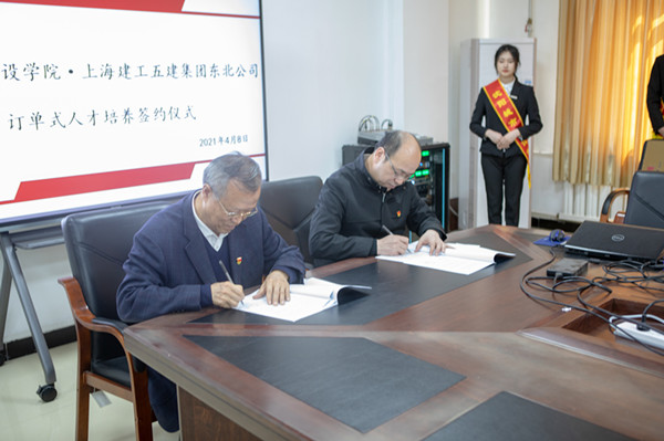 4月8日,学校与上海建工五建集团东北公司在留学生院404会议室举行订单式人才培养签约仪式。党委副书记、院长温景文,副院长马凤才,土木工程系主任赵中华,上海建工五建集团东北公司总经理张勇,党总支副书记周杨洋,副总经理庞艳出席了签约仪式。仪式由土木工程系党总支书记王涵主持。