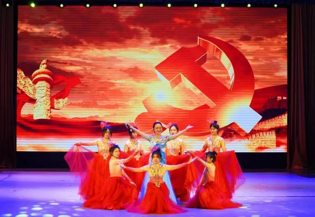 表彰大会结束后,学校举办了文艺汇演,用多形式、广参与、真情感的文艺节目抒发对党光辉历程的歌颂。