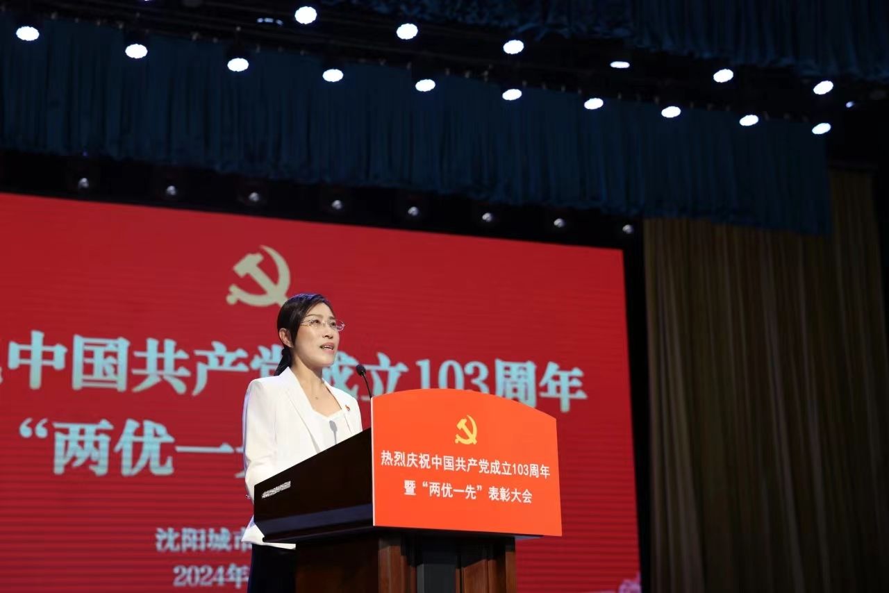 张晓雁在大会上讲话。她代表学校党委对受到表彰的先进集体和个人表示祝贺,向全校党员同志们致以节日的问候,对在学校建设发展的重要时期,全体教职工为学校做出的重要贡献表示感谢。她从扎实开展党史学习教育、学习贯彻习近平新时代中国特色社会主义思想主题教育;以“一融双高”建设为抓手,不断提升基层党组织政治功能和组织功能;秉承“五实”教育理念,以提高人才培养质量和就业质量为导向不断提升教育教学水平等方面回顾了过去三年各基层党组织和广大师生党员作出的突出贡献。在学校建设发展的关键的时期,她向全体党员发出三点号召:一是坚信信仰的力量,不负“为人民服务”的铮铮誓言;二是坚信梦想的力量,不忘心中的教育梦想和初心;三是坚信奋斗的力量,承担起为党育人、为国育才的使命担当。她希望全体党员都能够在辽宁全面振兴新突破,在学校奋发崛起中挥洒汗水、绽放誓言,充分发挥党组织战斗堡垒作用和党员先锋模范作用,为打赢攻坚之年的攻坚之战,为学校的未来发展奋勇向前!